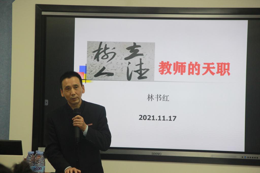 林书红教授以“立德树人教师的天职”为题,通过引用习近平总书记的讲话指出教师在引导学生成长的重要作用,以及加强师德师风建设的重要意义。他以从教37年以来不同时期优秀毕业校友的案例阐述了立德树人的重要意义。他以“我的微博天地”--在微博上和学生互动交流解决实际问题的具体例子,展示了立德树人的主要内容。最后,他强调,教师要严以律已、努力学习、教书育人、为人师表、以生为本真正做到立德树人,当好学生成长的引路人。