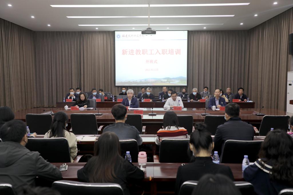 11月10日下午,我校2021年新进教职工入职培训开班式在图书馆学术报告厅举行。校党委书记赖海榕出席会议并讲话,校党委委员、副校长商光美主持会议,校改革与发展委员会有关成员,教师工作部、学生工作部、教务处、人事处、科研处等部门主要负责人,各学院党委主要负责人、2021年全体新进教职工等参加了开班式。