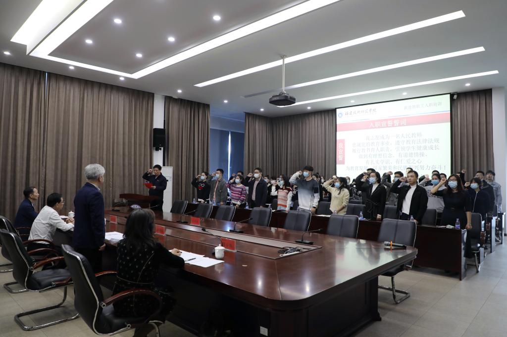 由赖海榕书记监誓、教师工作部主要负责人领誓,全体新进教职工进行入职宣誓,并与所在学院党委主要负责人签订师德师风承诺书,郑重承诺坚守职业道德。